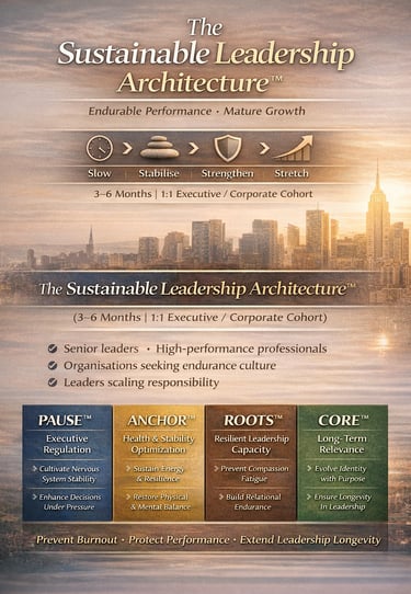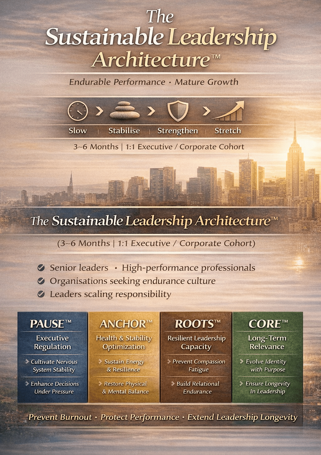 The leadership development program for senior leaders, high-performance professionals, and organisations ready to build an endurance culture, without sacrificing health, relationships, or long-term relevance.