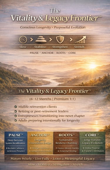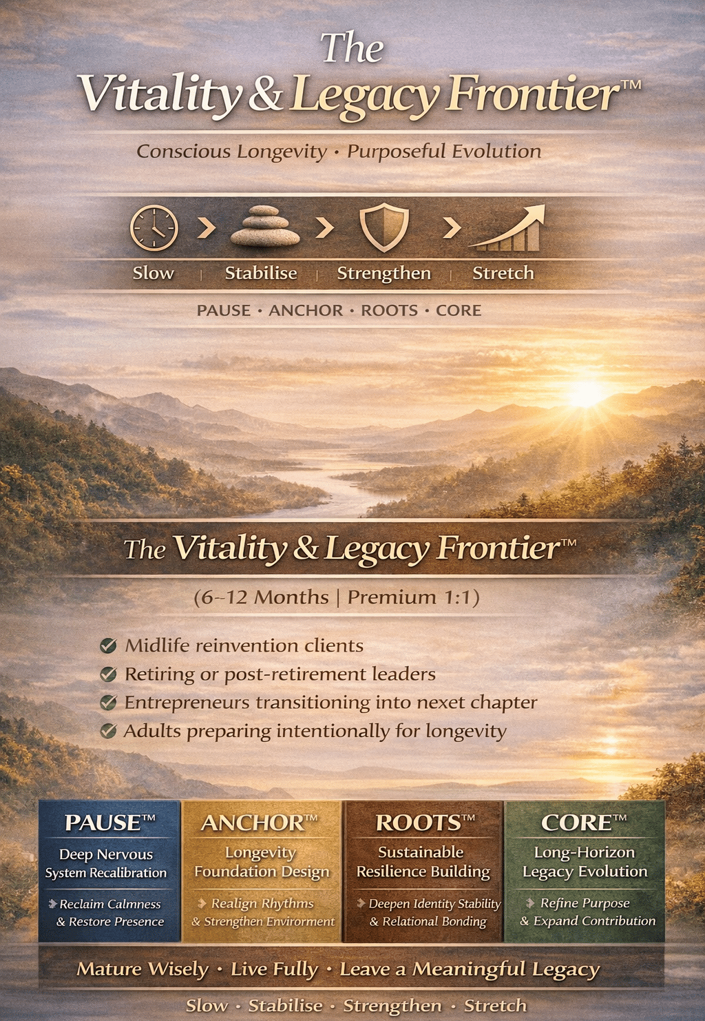 For people in midlife who are ready to move beyond “coping” and into a new chapter of conscious longevity and purposeful evolution.